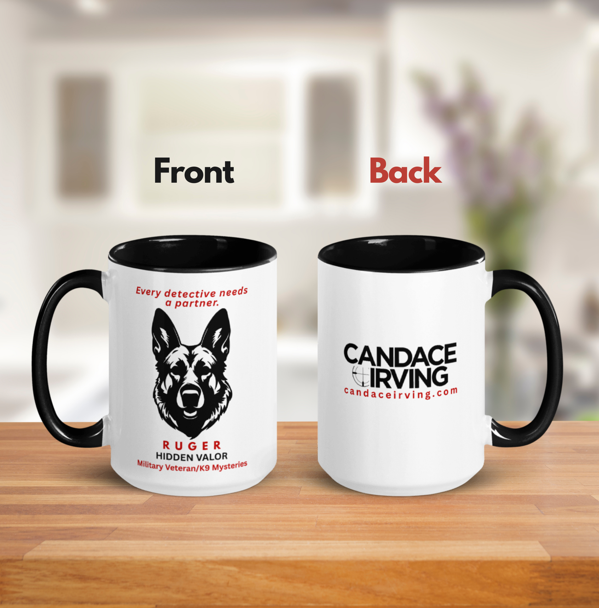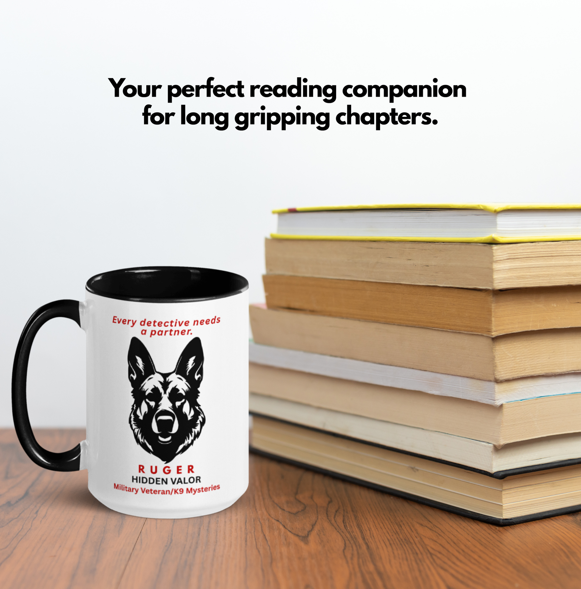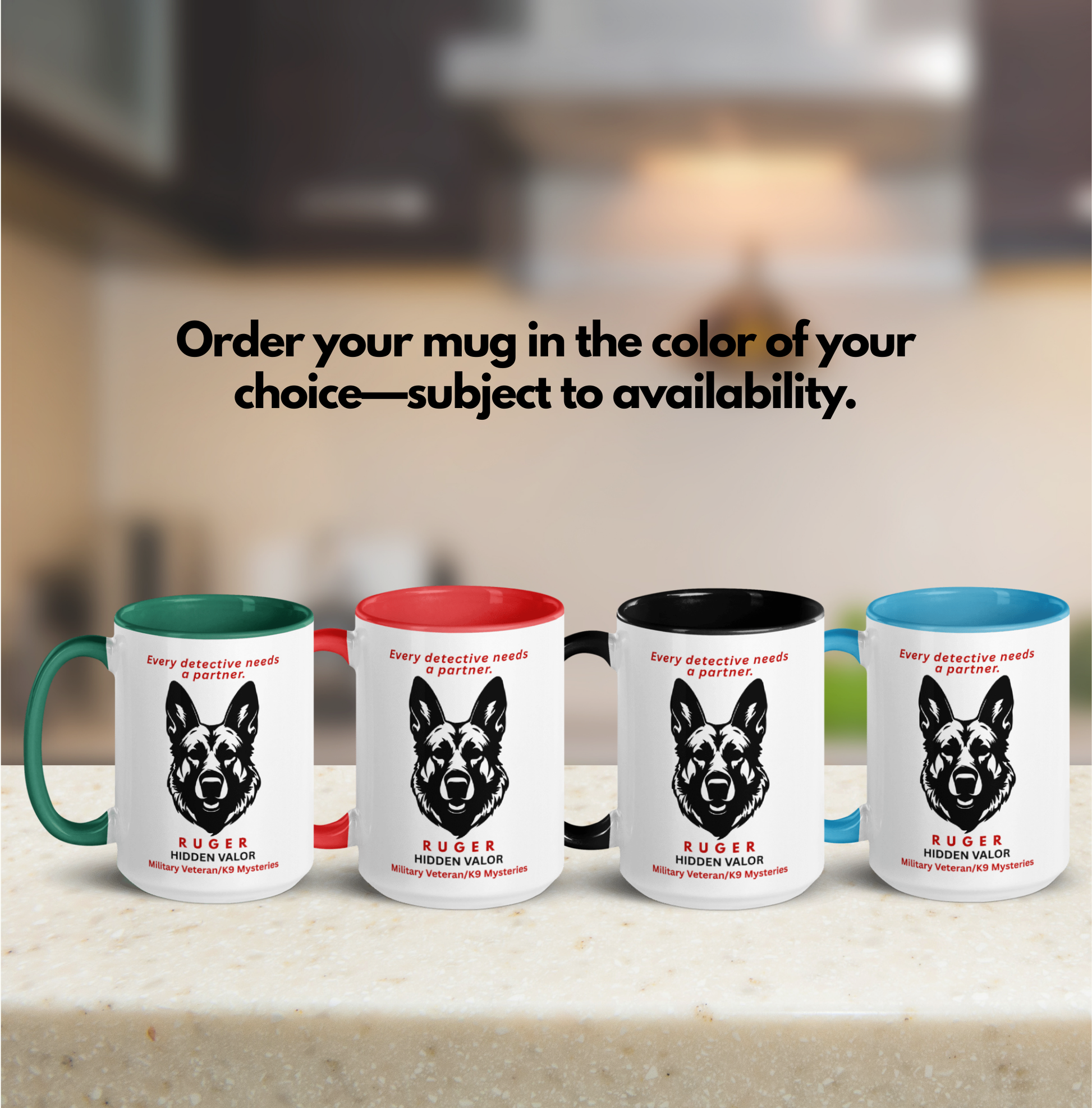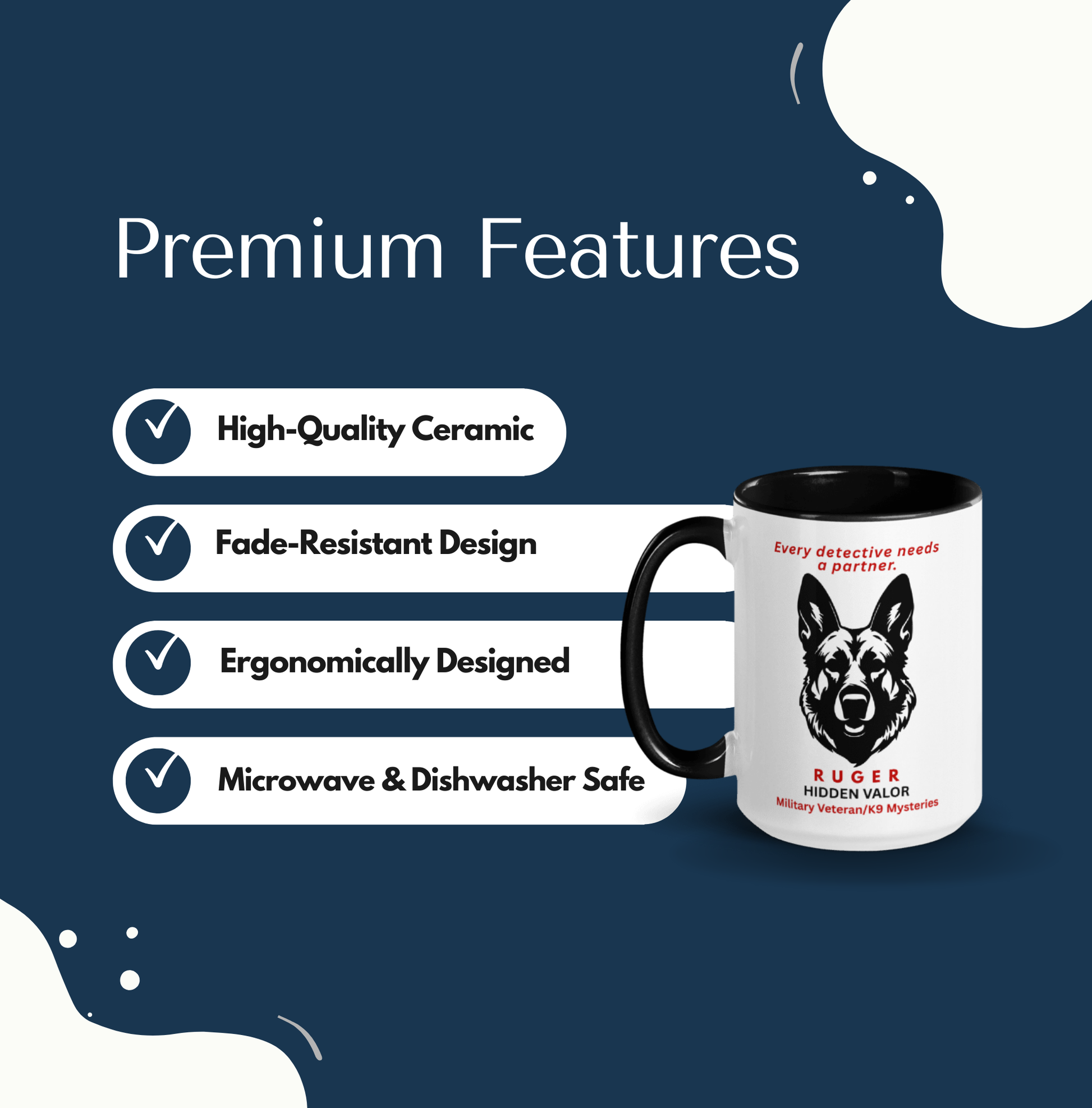 Michael Ballard Good, sturdy mug with an image of Ruger and text that says "Every detective needs a partner".